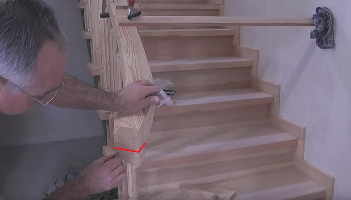 Как сделать изгиб поручня внизу лестницы
