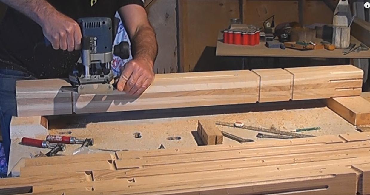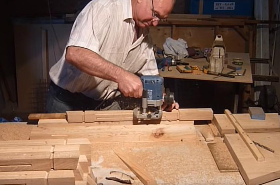 Проходим фрезеровальной машинкой по каждому из четырех углов средней части балясины.