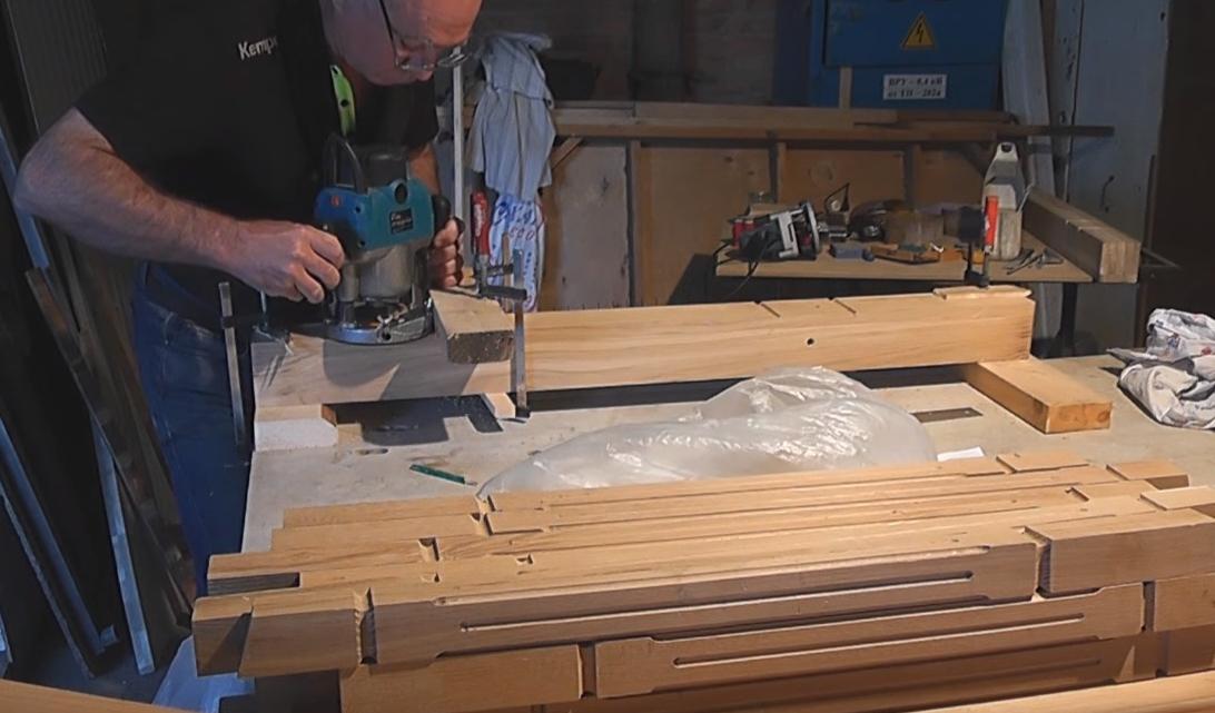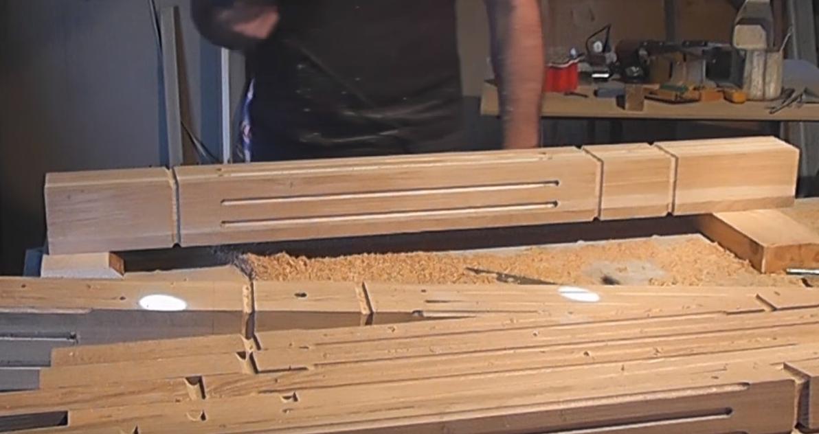 После обрезки лишней части столба делаем его “шляпку”. Для этого используем ту же фрезу, что и при создании угловых фризов, однако на фрезеровочной машинке выставляем ее на максимальное расстояние.