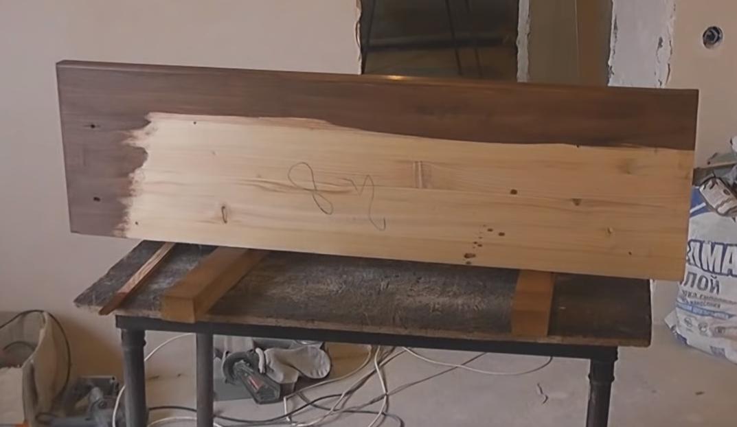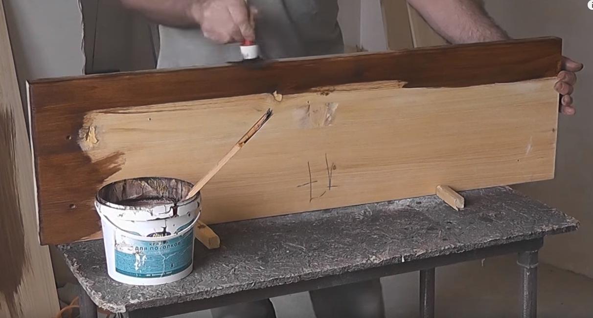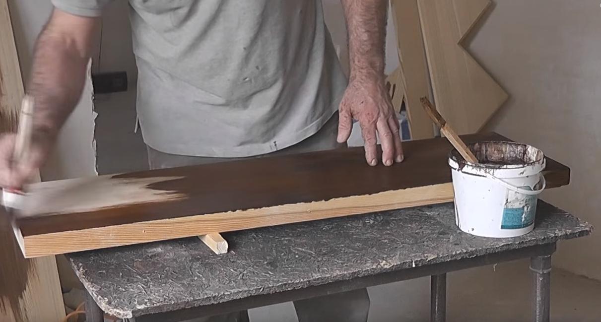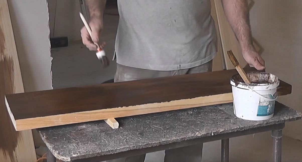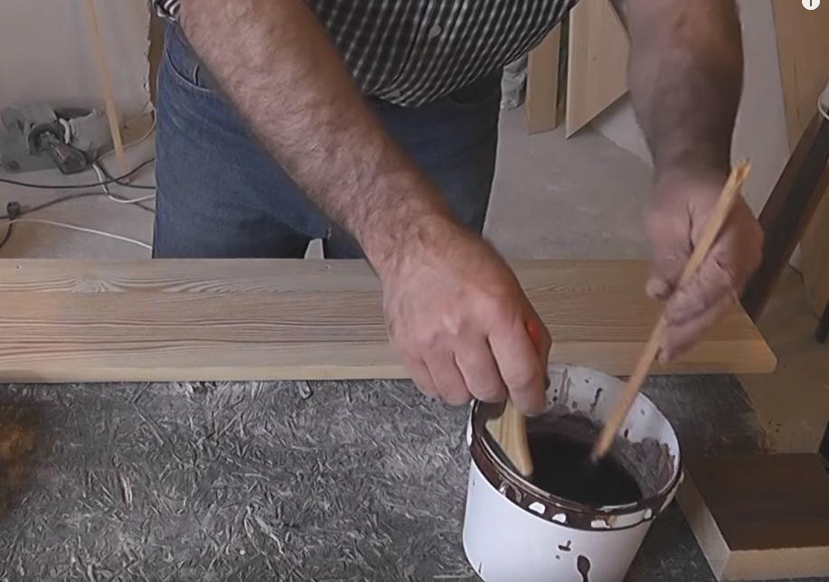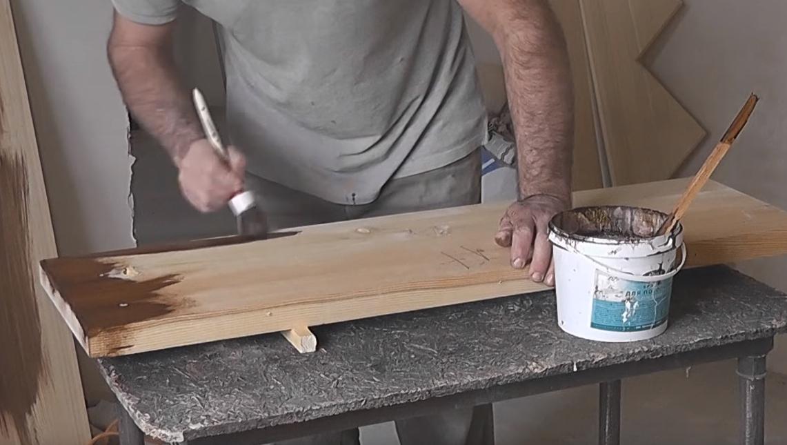 Морилку разводим до жидкой консистенции, чтобы она легко наносилась кистью.