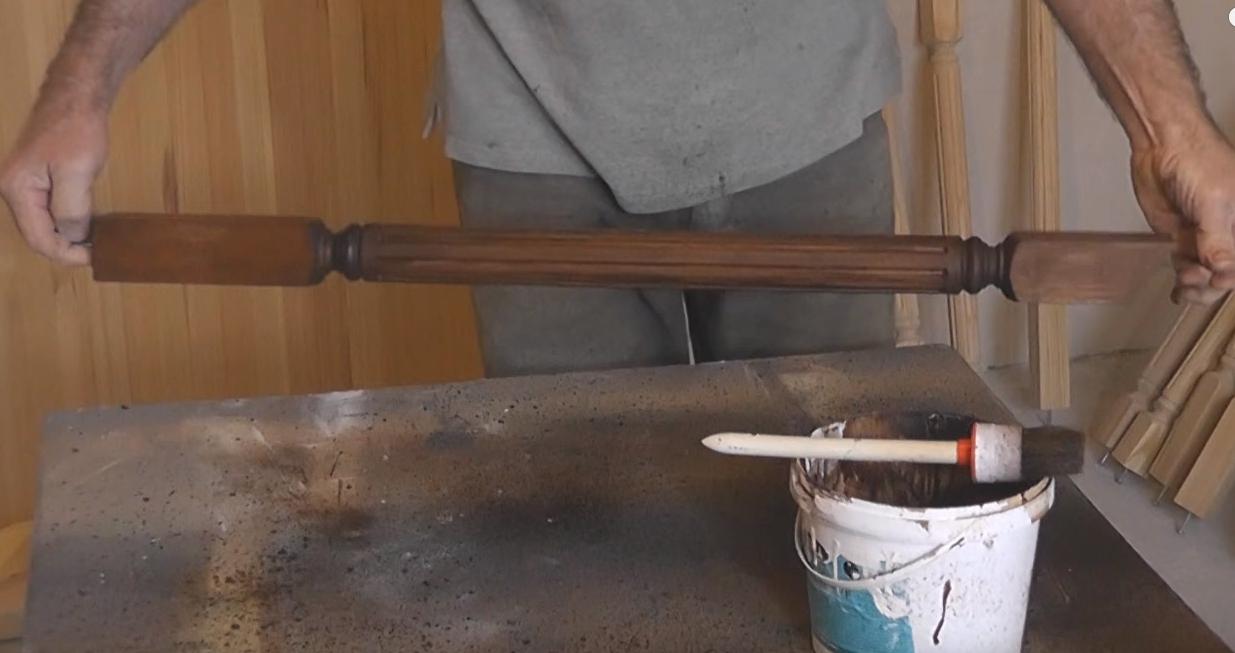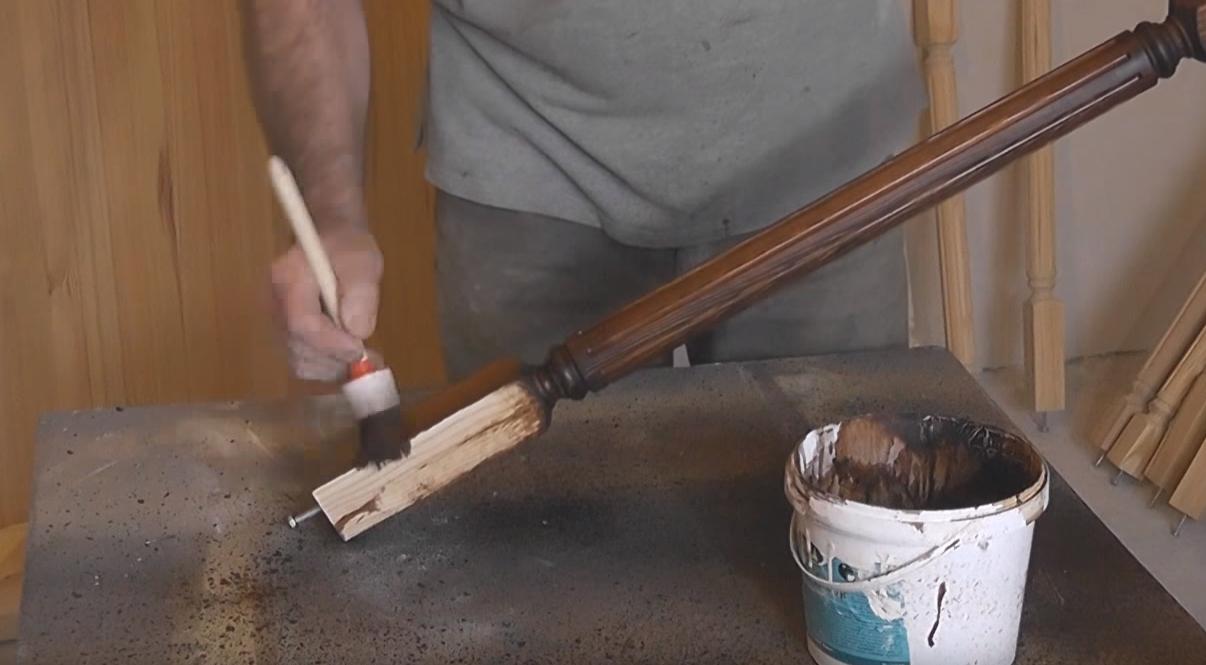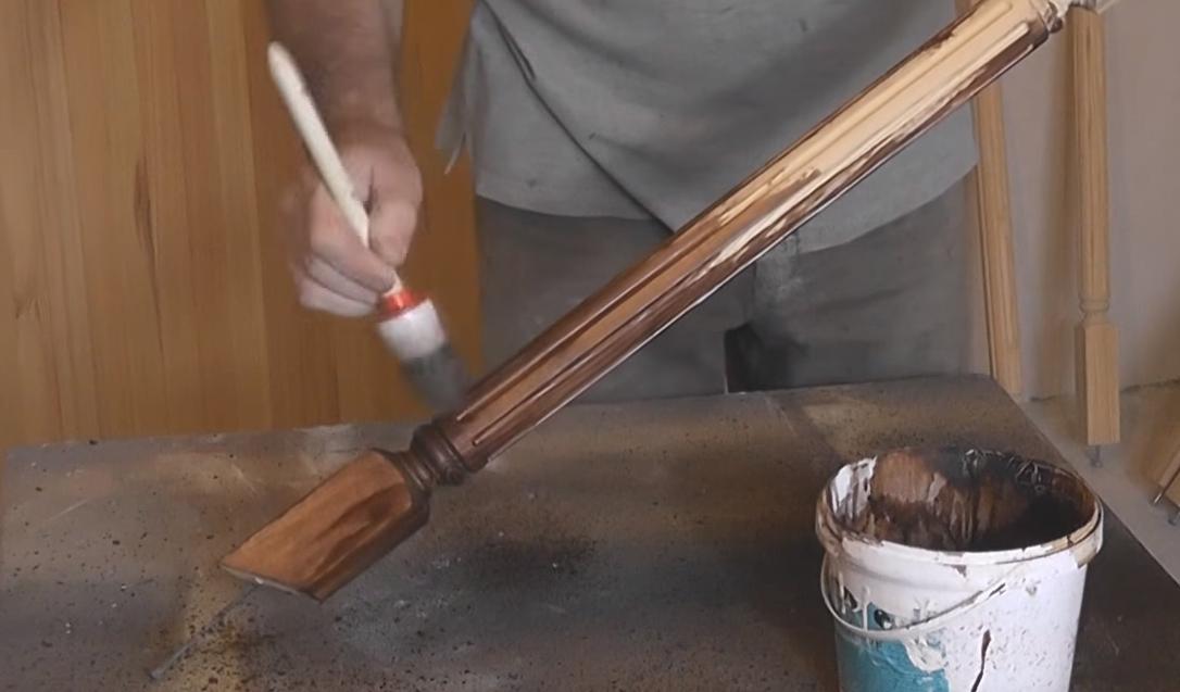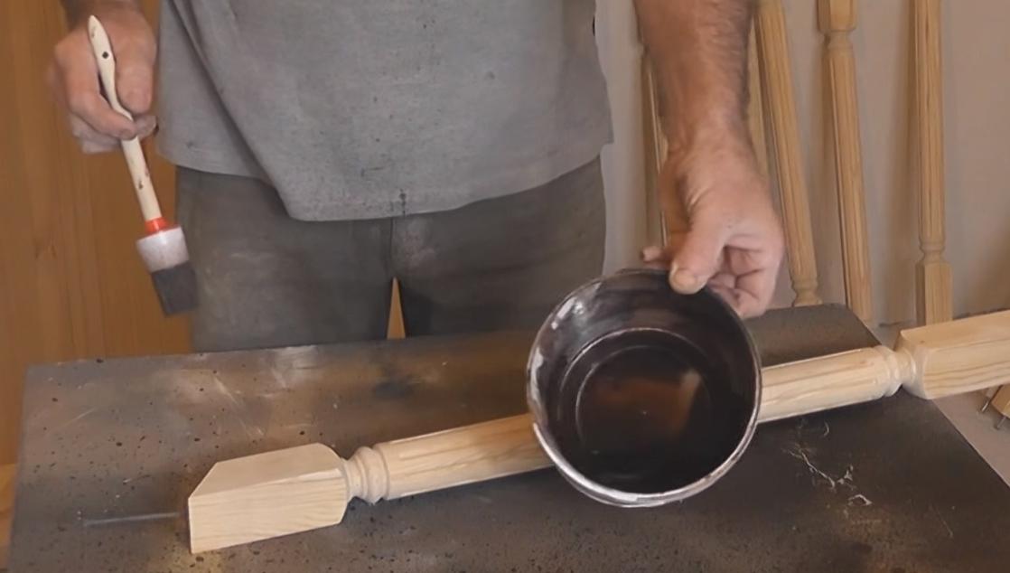 Прежде чем наносить морилку на балясину, лучше взять опытный образец такой же древесины и посмотреть, какой цвет получается после нанесения и высыхания, подходит ли он вам.