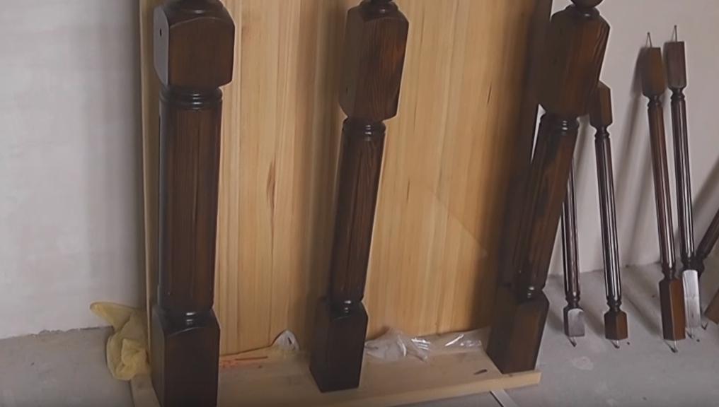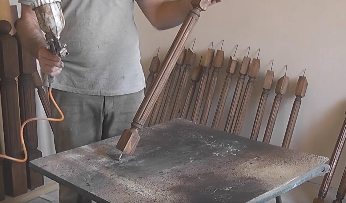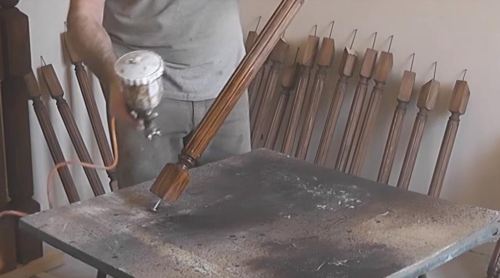После того как все балясины окрашены и просохли, их можно начинать покрывать лаком.