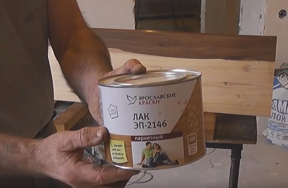 Для второго и третьего слоя лакового покрытия используем эпоксидный паркетный лак ЭП-2146. Он разводится примерно один к одному. Он более эластичный и его можно наносить более толстым слоем, чем грунтовой лак.