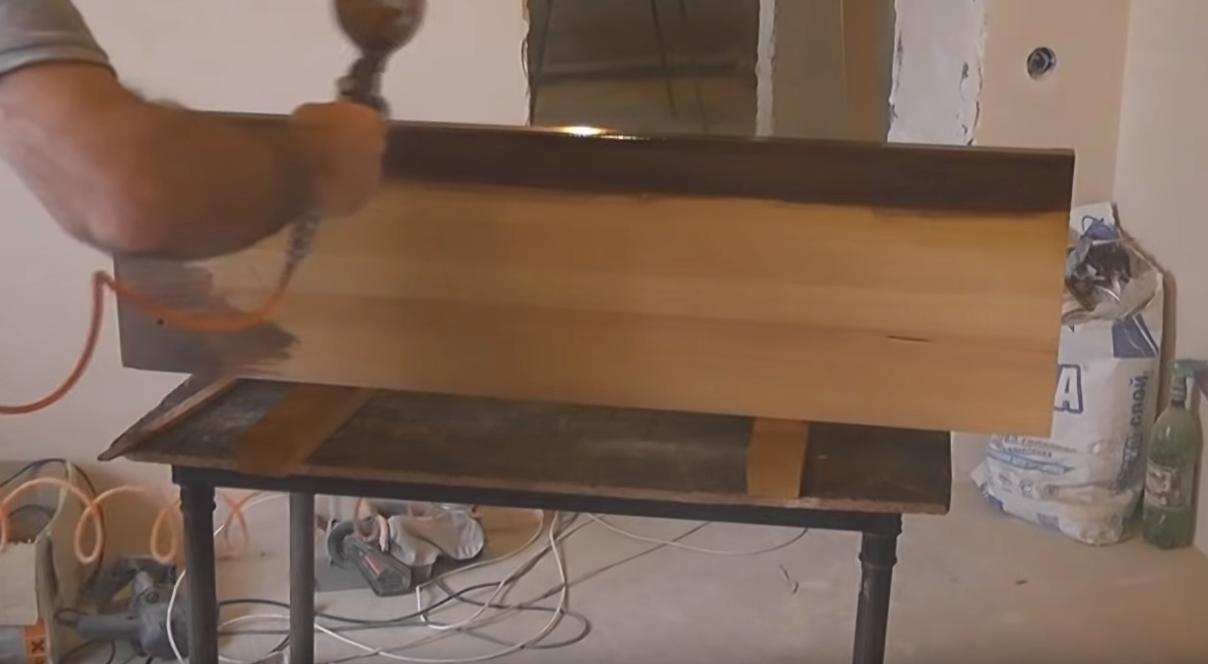 Можно наносить первый слой лака. Для нанесения лака вновь используем пневматический краскопульт.